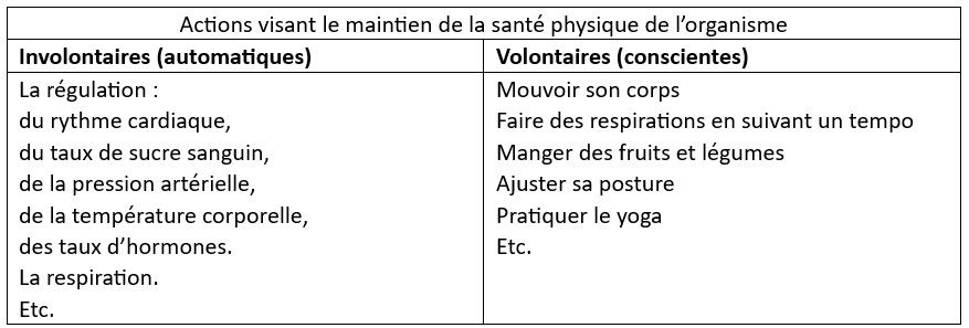D’ailleurs, jogger fait partie des actions volontaires que l’on peut faire pour se maintenir en santé. Bien s’alimenter, pratiquer des exercices de musculation ou de respiration et faire du yoga sont d’autres actions conscientes au service du bon fonctionnement de notre système.